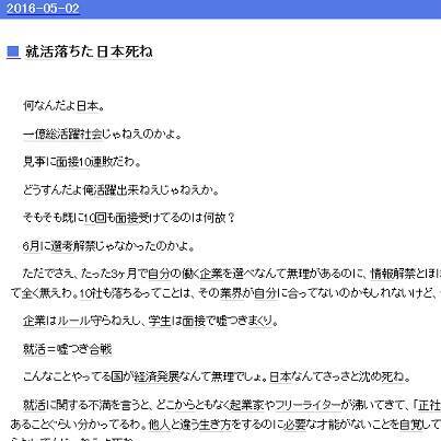 保育園に続いて 就活落ちた日本死ね ブログが登場 見事に面接10連敗だわ 俺活躍出来ねえじゃねえか 2016年5月10日 エキサイトニュース