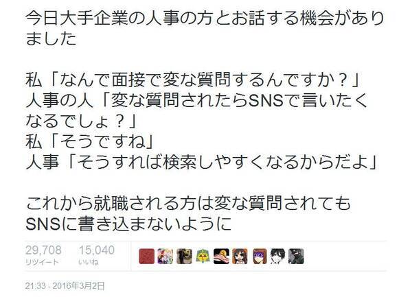 なんで面接で変な質問するんですか それに対する大手企業の人事の回答が Twitter で話題に 2016年3月5日 エキサイトニュース