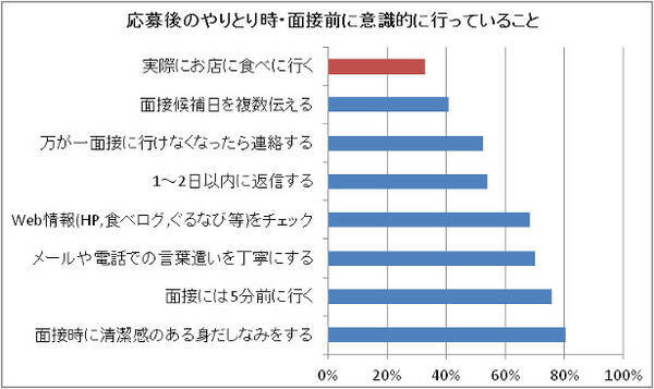 面接までに お店に食べに行く 応募者は3人に1人 飲食店の採用面接に関する意識調査 求人 飲食店 Com 2016年9月1日 エキサイト ニュース