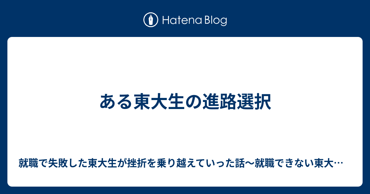 ある東大生の進路選択 就職で失敗した東大生が挫折を乗り越えていった話 就職できない東大生のリアル