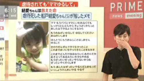 動画 ゆるして 虐待で女児がノートに謝罪の言葉 フジのニュースで報道中に島田アナが号泣 励ましの声多数 ニコニコニュース