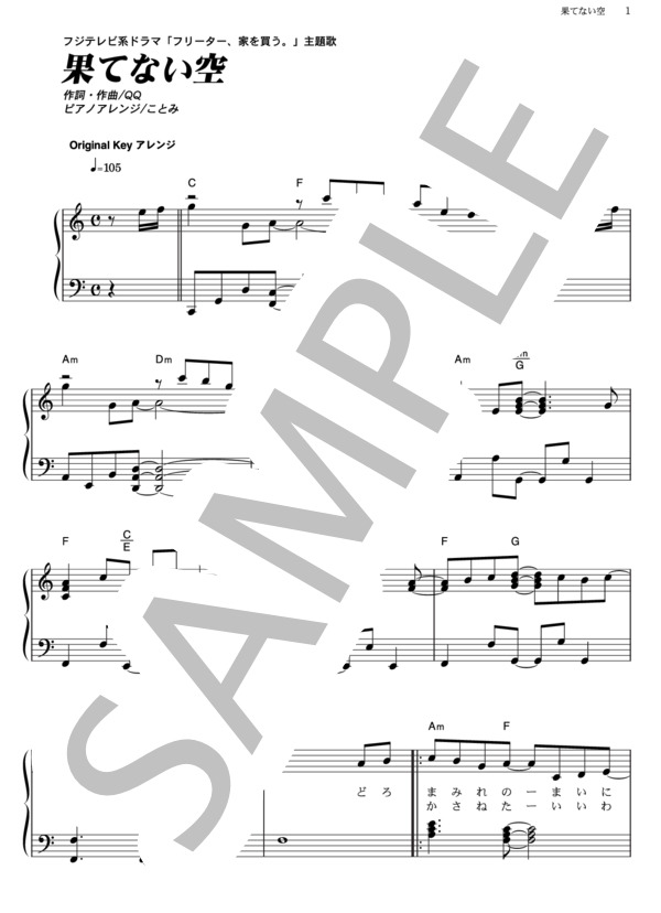 果てない空 フリーター 家を買う 主題歌五線譜プレビュー Eopオンライン楽譜棚 五線譜 楽譜 ピアノ楽譜